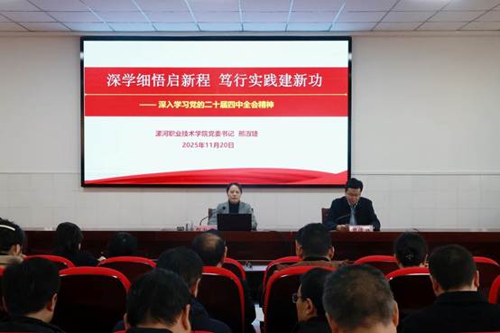 邢淑婕强调,学习好、贯彻好全会精神是全校当前和今后一个时期的重大政治任务,要深刻领会全会精神内涵,主动把教育摆到中国式现代化发展的大局中,以“跳出教育看教育”的方式,立足“十五五”时期发展战略任务,联系职业教育实际,切实将全会精神转化为教育教学改革、人才培养提质、校园治理增效的责任担当。要以理论武装夯实各项工作举措落实根基,持续在深化、内化、转化上下功夫,紧密结合“十五五”规划中对职业教育、科技创新、人才培养提出的新要求、新部署,将其中的精神实质与核心要义融入立德树人全过程。要围绕工作实践履职担当尽责,对照全会精神部署,找职业教育发展定位;对照学校发展目标,找工作差距;对照师生期盼,找未来发展方向。要以作风能力提升筑牢落实保障,不断提升政治能力、专业能力、群众工作能力,始终坚守社会主义办学阵地,严守规矩意识,站稳人民立场,回应师生诉求。要锚定目标推动学校高质量发展,以“锚定一个目标,深化六项改革,实现六大提升,实施八大工程”的发展路径,将全会部署与学校改革发展深度融合,在深化产教融合、提升人才培养质量、增强服务发展能力上取得新突破,切实把全会精神落实到办学治校各环节。